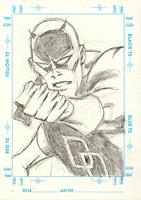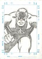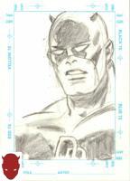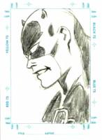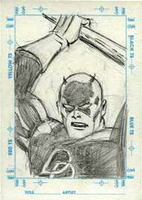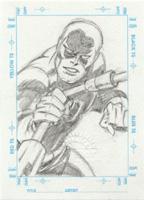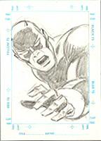 Special note: Severin is listed in the "official" Fleer checklist as not having done any Daredevil sketchagraphs. Add this to highly varied sketches, with as much or more detail in action/background as any other artist, AND a lower number of sketches per character (and more characters!) than any other artist, and I think the Severin cards are some of the best & most collectible in this set. |