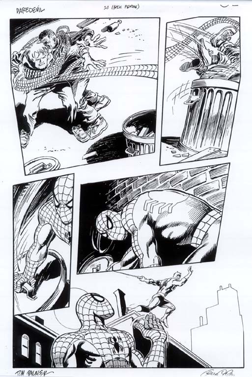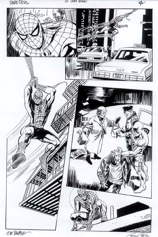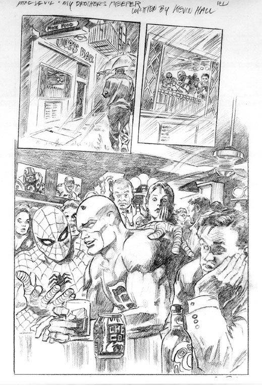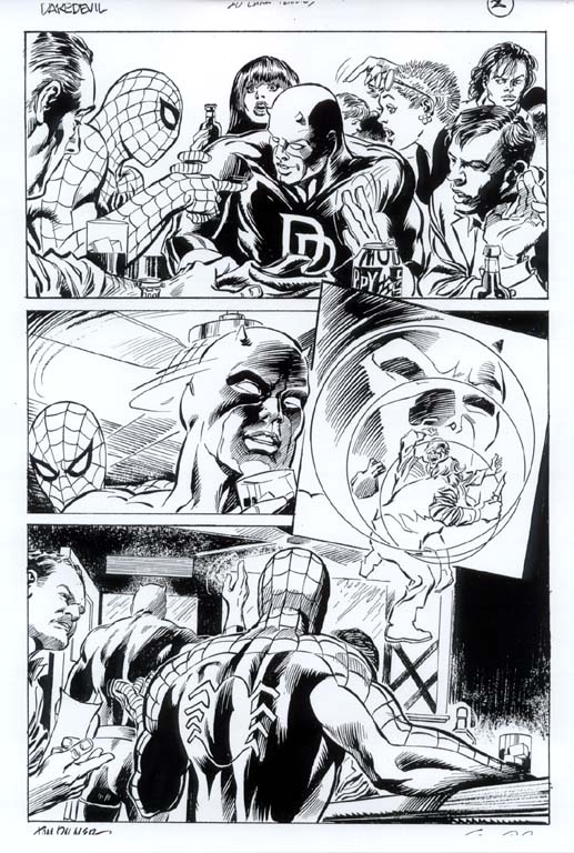 I'm relating this tale to you for two reasons: First off, it's just fun for me to step through it again in my mind. But the main reason I want to get this down on paper (so to speak) is this: if you've ever thought about attending a convention, or if you've ever wanted to meet a writer, artist, or other celebrity, and especially if you've ever dreamed about writing or drawing a comic book, I want you to see that dreams can come true, even for average nobodies like you and me. The first part of that most amazing of years actually started almost three years previously in 1998. I'd been a fan of the comic book Daredevil for about 17 years, and I'd been running the Daredevil Resource website for about two years by that time. I knew that April of 1999 was going to be Daredevil's 35th Anniversary, and I came up with what I thought would be the perfect way to celebrate such an important event! Marvel could publish a double-sized issue with four half-size stories by the following teams: Stan Lee/Gene Colan, Frank Miller/David Mazzucchelli, Ann Nocenti/John Romita, Jr., and DG Chichester/Lee Weeks. These teams were representative of the longest running teams, and the teams which had the most impact on Daredevil over the years.